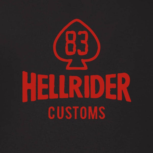 Natuurlijk ontbreekt het originele HellRider Customs neklabel niet.